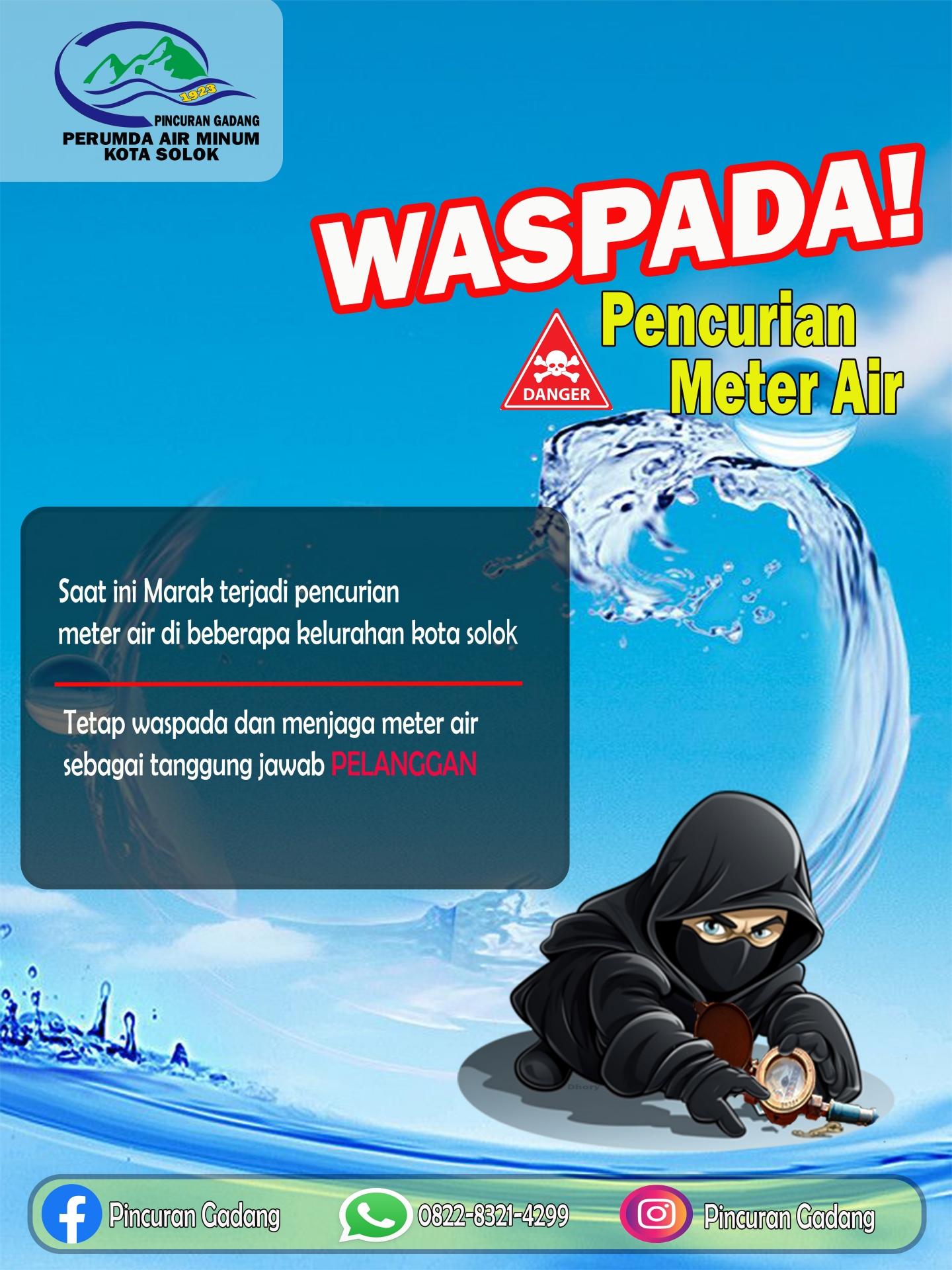 Waspada Meter Air dirumah   Dengan Marak nya terjadi pencurian Water meter air, pelanggan lebih waspada menjaga Meter air karena itu adalah tanggung jawab pelanggan.