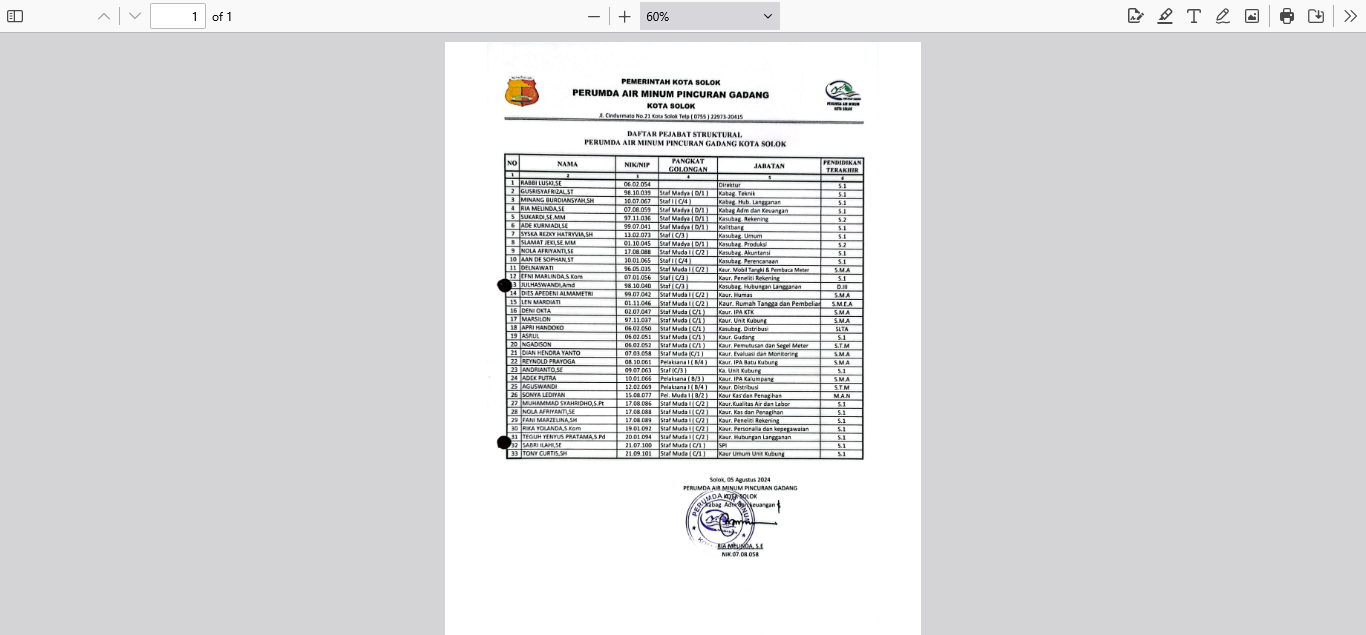 Struktur Organisasi PDAM Kota Solok
