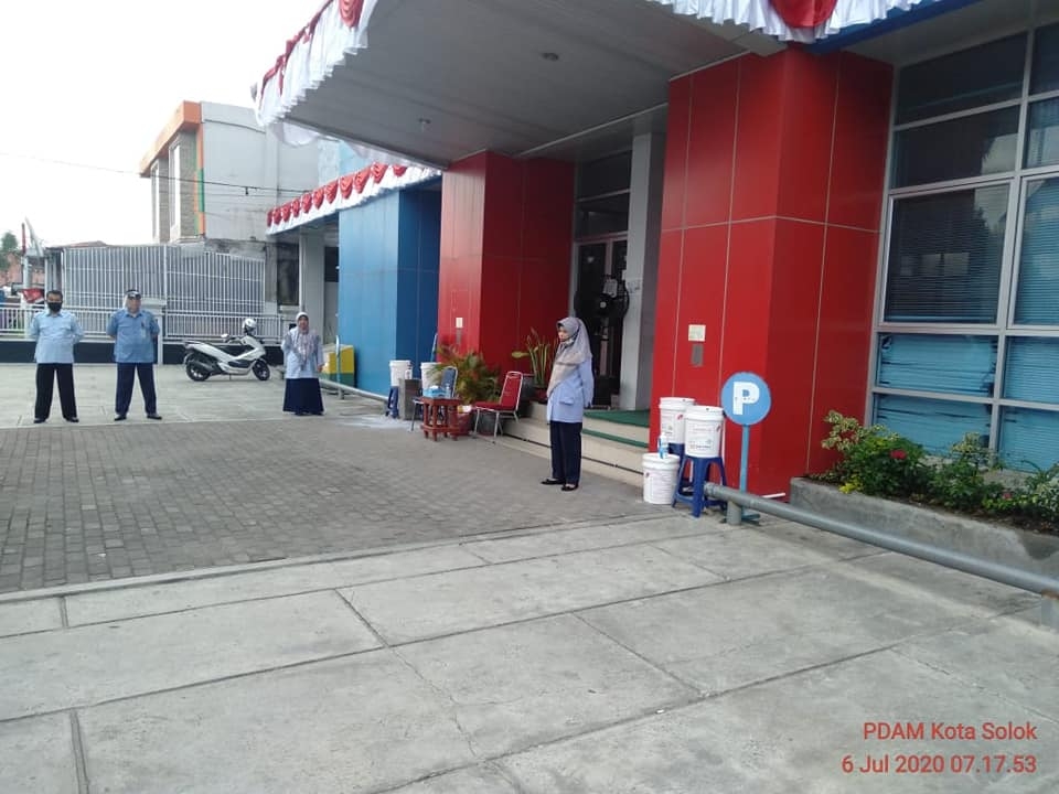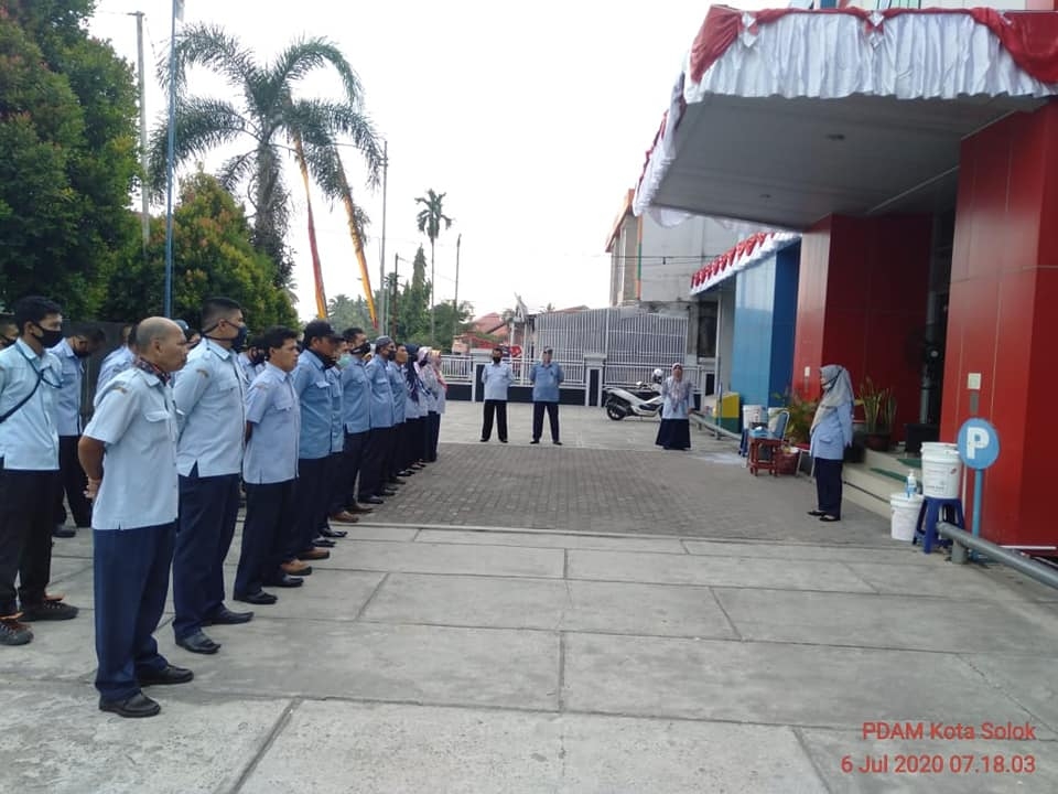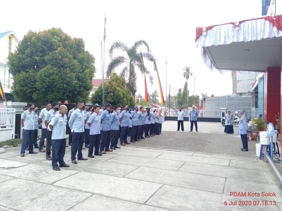 Apel pagi PDAM Kota Solok, sebagai Pembina Apel Kabag Hubungan Langganan (Bp. Minang Burdiansyah, SH), berpesan kepada seluruh karyawan/ti untuk terus menjalankan protokol kesehatan, menjaga kesehatan