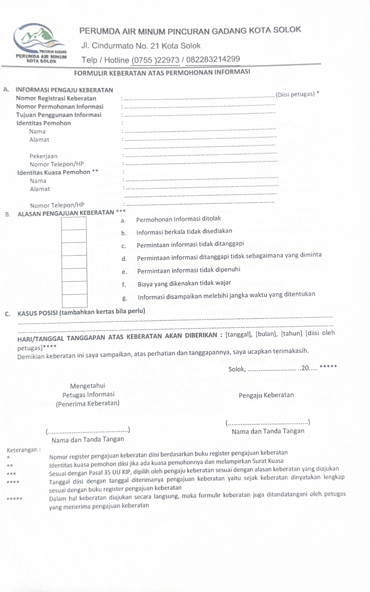 Form Pengajuan Keberatan Informasi Publik